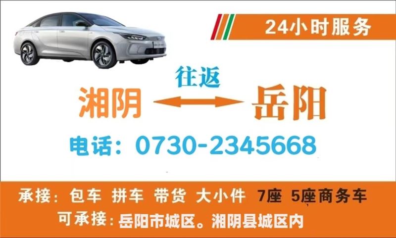 湘阴至岳阳商务车电话:0730-8686818支持散客拼车,包车,小件带货,每天两地往返,市县城区内包接送,全程高速直达,方便快捷,全天24小时为您服务。